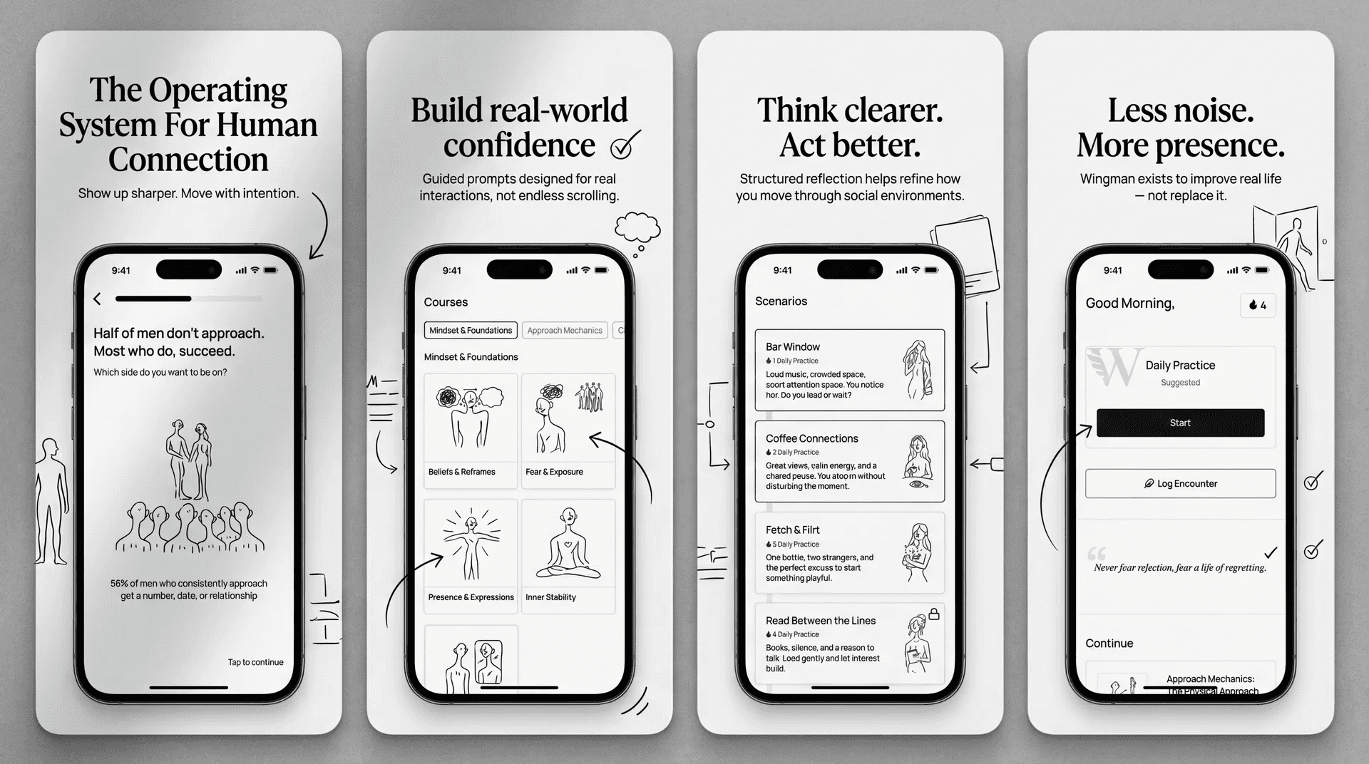 Wingman is a structured system for building confidence, conversation ability, and natural presence. It turns awkward effort into repeatable skill. Launching March 2026*